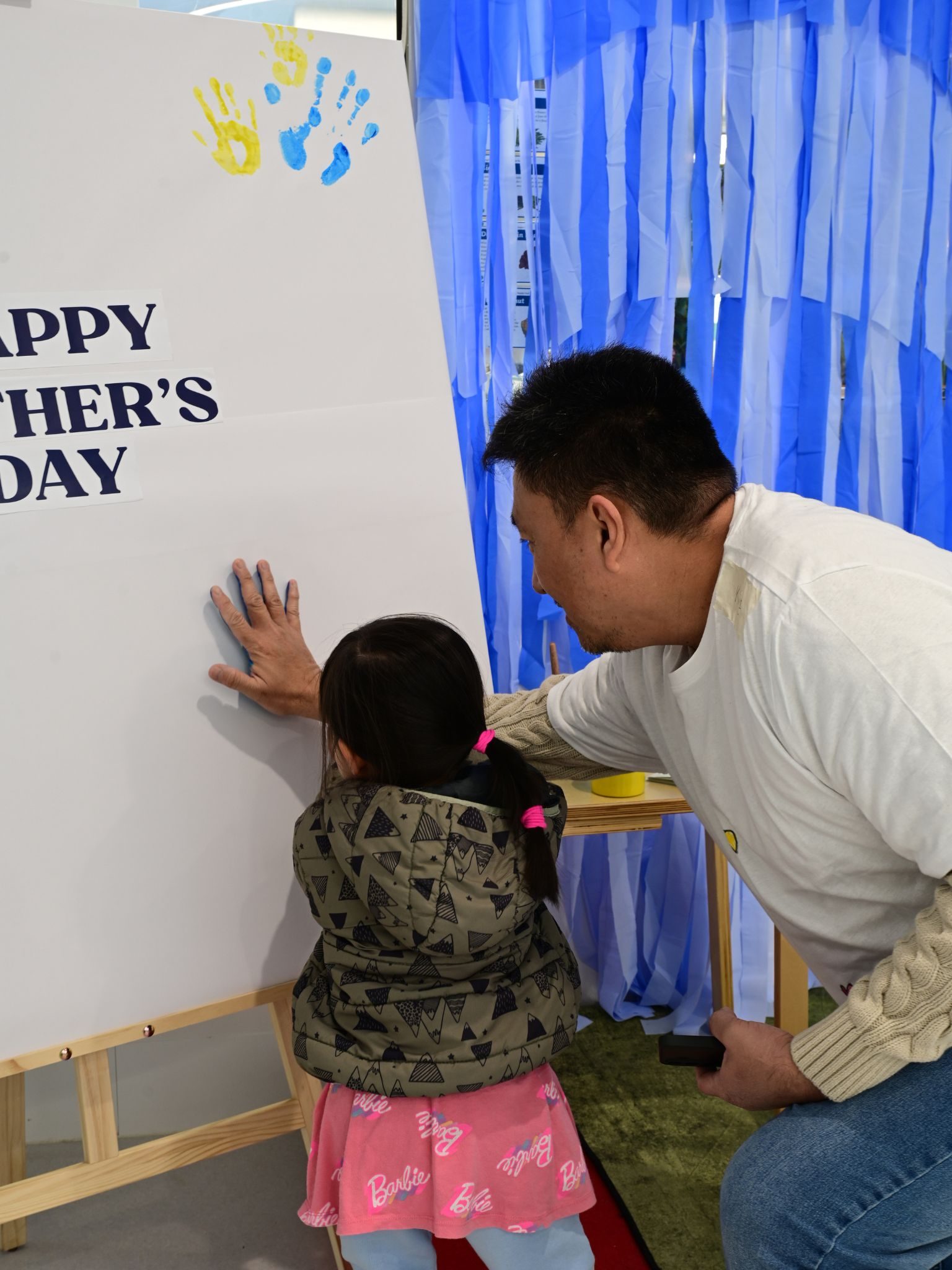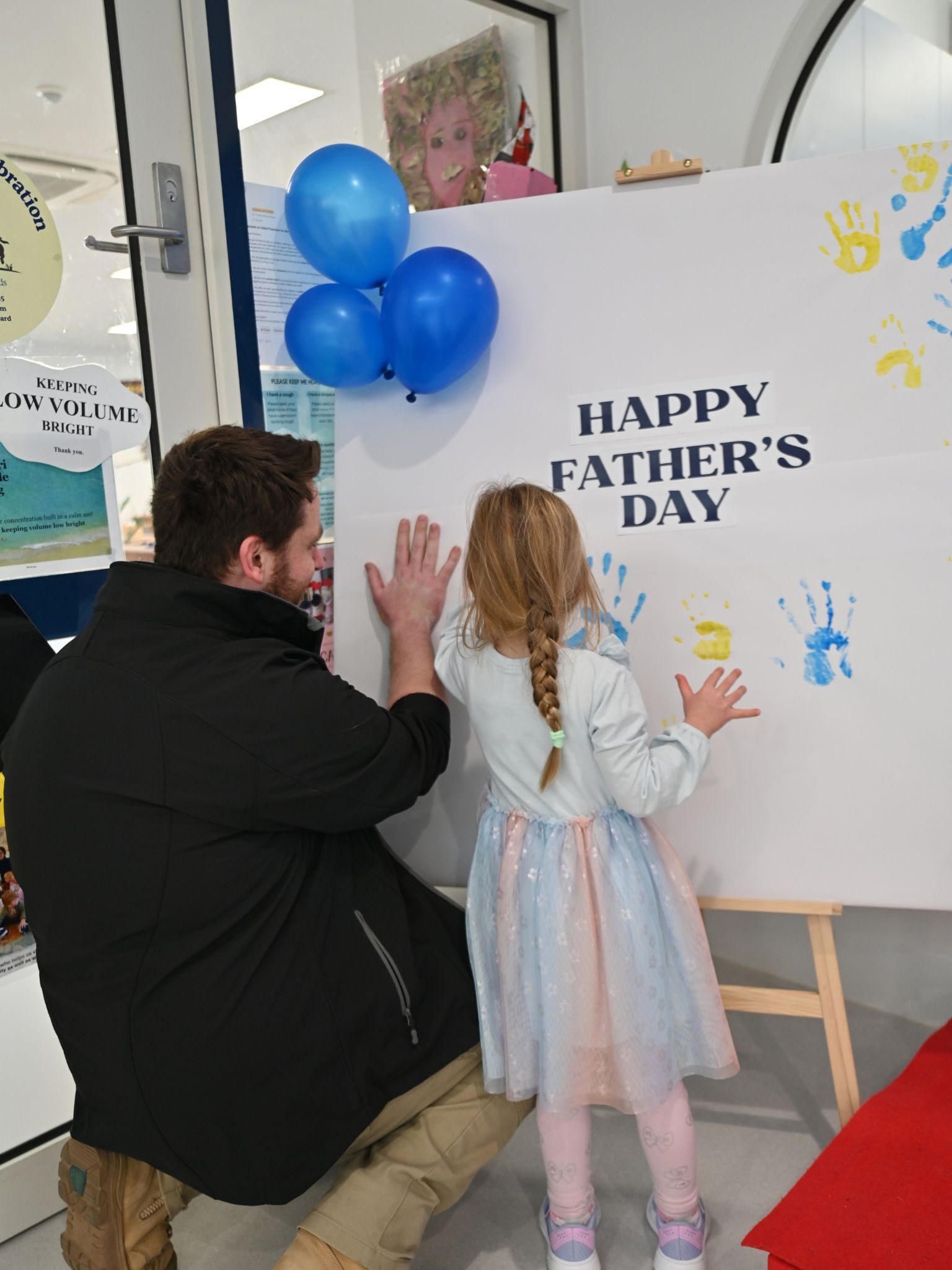 Perhaps the most treasured part of the day was the photo booth and hand-painting station. Fathers and children painted each other’s hands, leaving colourful prints on canvas as keepsakes. These handprints weren’t just art — they were little snapshots of love, joy, and the special bond between dads and their children.